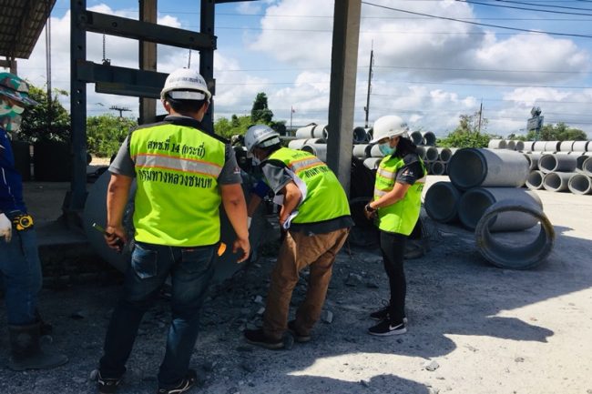 หน่วยควบคุมคุณภาพงานทาง สทช. ที่ 14 เข้าทำการทดสอบท่อระบายน้ำ